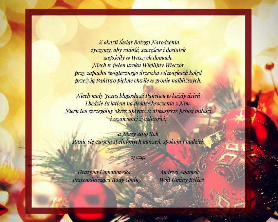 Przewodnicząca Rady Gminy Bełżec zwołuje IV sesję Rady Gminy Bełżec w dniu 28 grudnia 2018r. na godz. 1000 w sali narad Urzędu Gminy Bełżec.